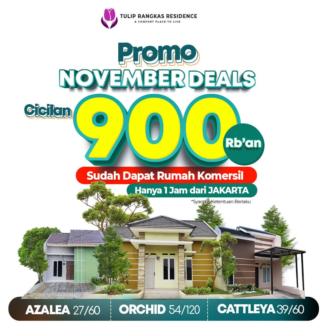 Hai Sobat Tangkas, Tulip Rangkas Residence mengadakan program spesial nih di bulan November Buat Kamu Yang Masih Ngontrak Dan Ingin Punya Rumah Dengan Badget Pas pas an? Gampang banget, Langsung Ke Tulip Rangkas Residence aja Ada "Promo November Deals" Berlaku Mulai Bulan Ini.